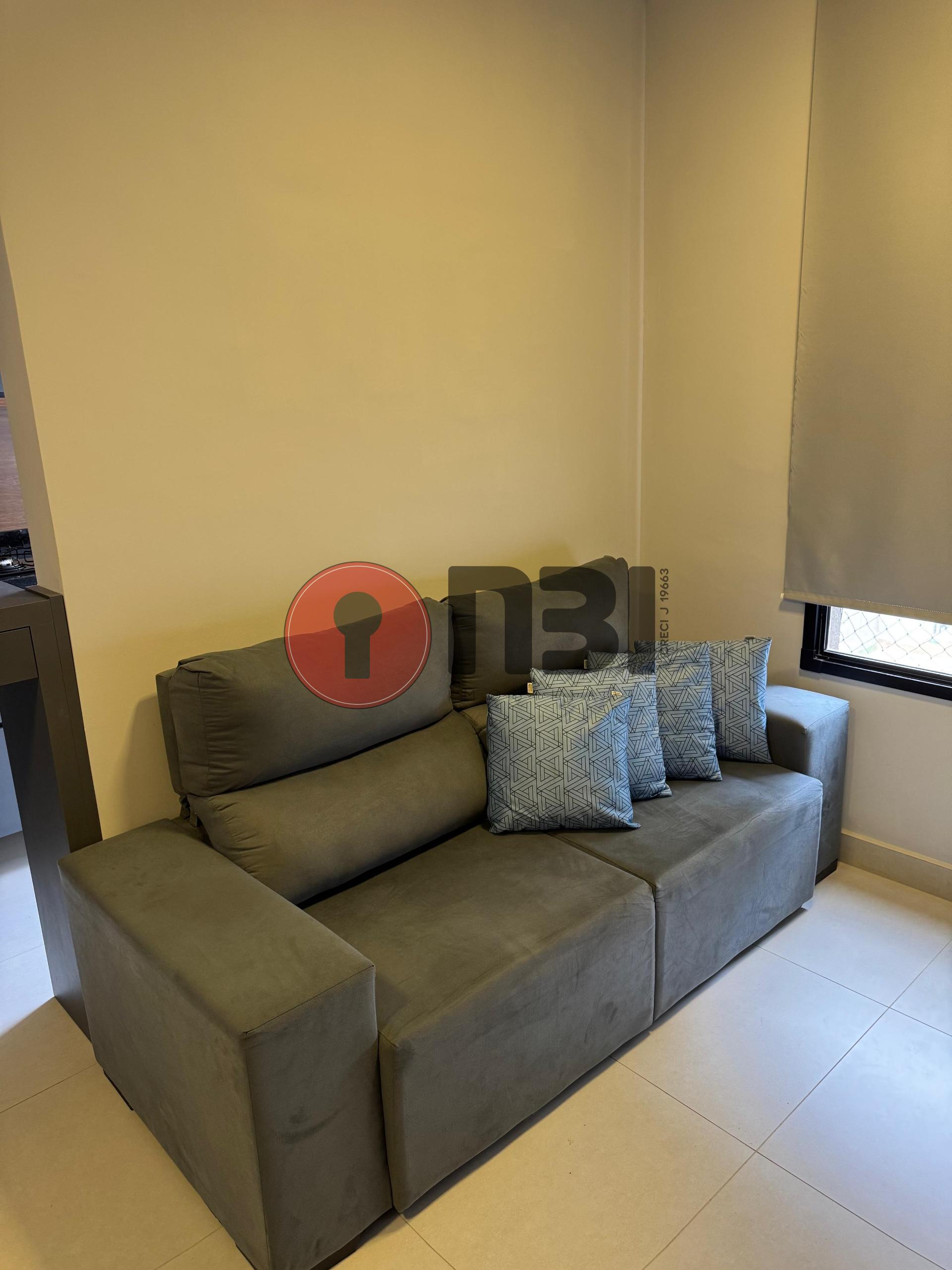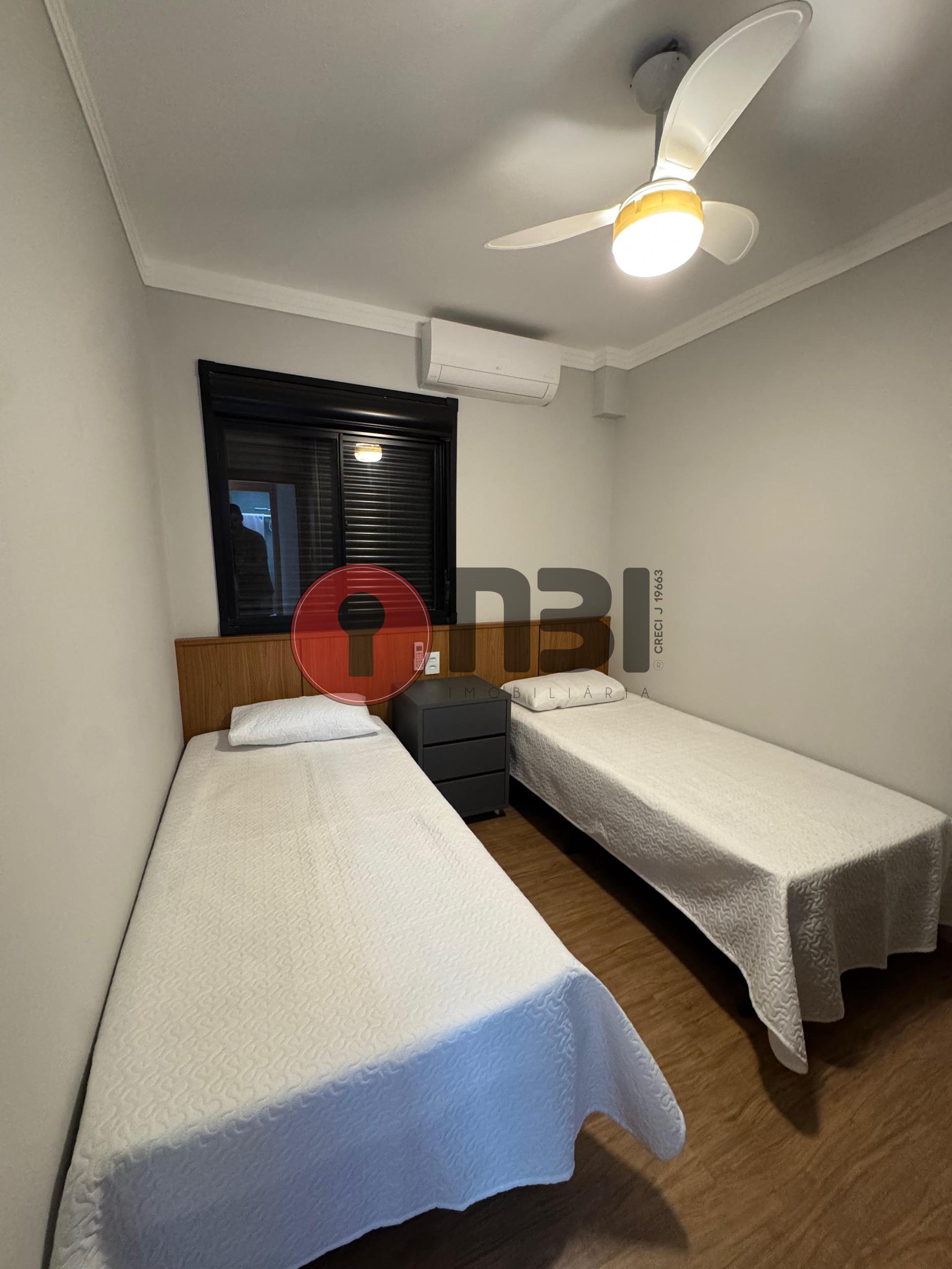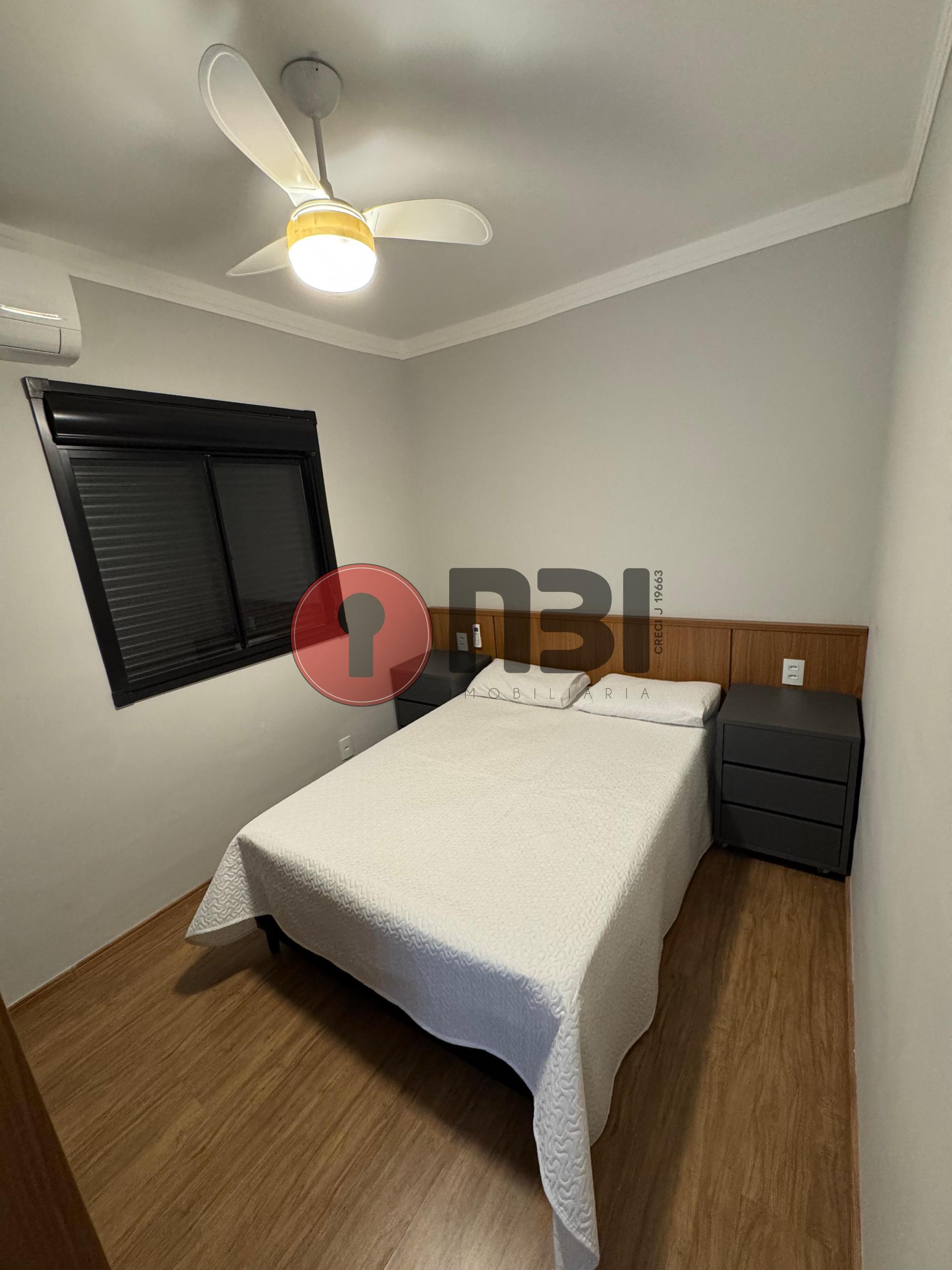 Imóvel completo mobiliado para locação contendo sala ampla, cozinha planejada, 2 quartos com armários, ventiladores de teto, ar-condicionado, banheiro social, lavanderia e área de serviço.