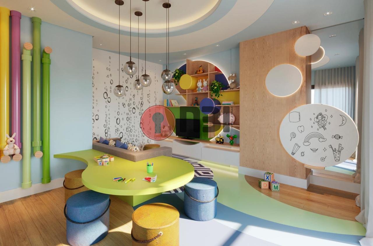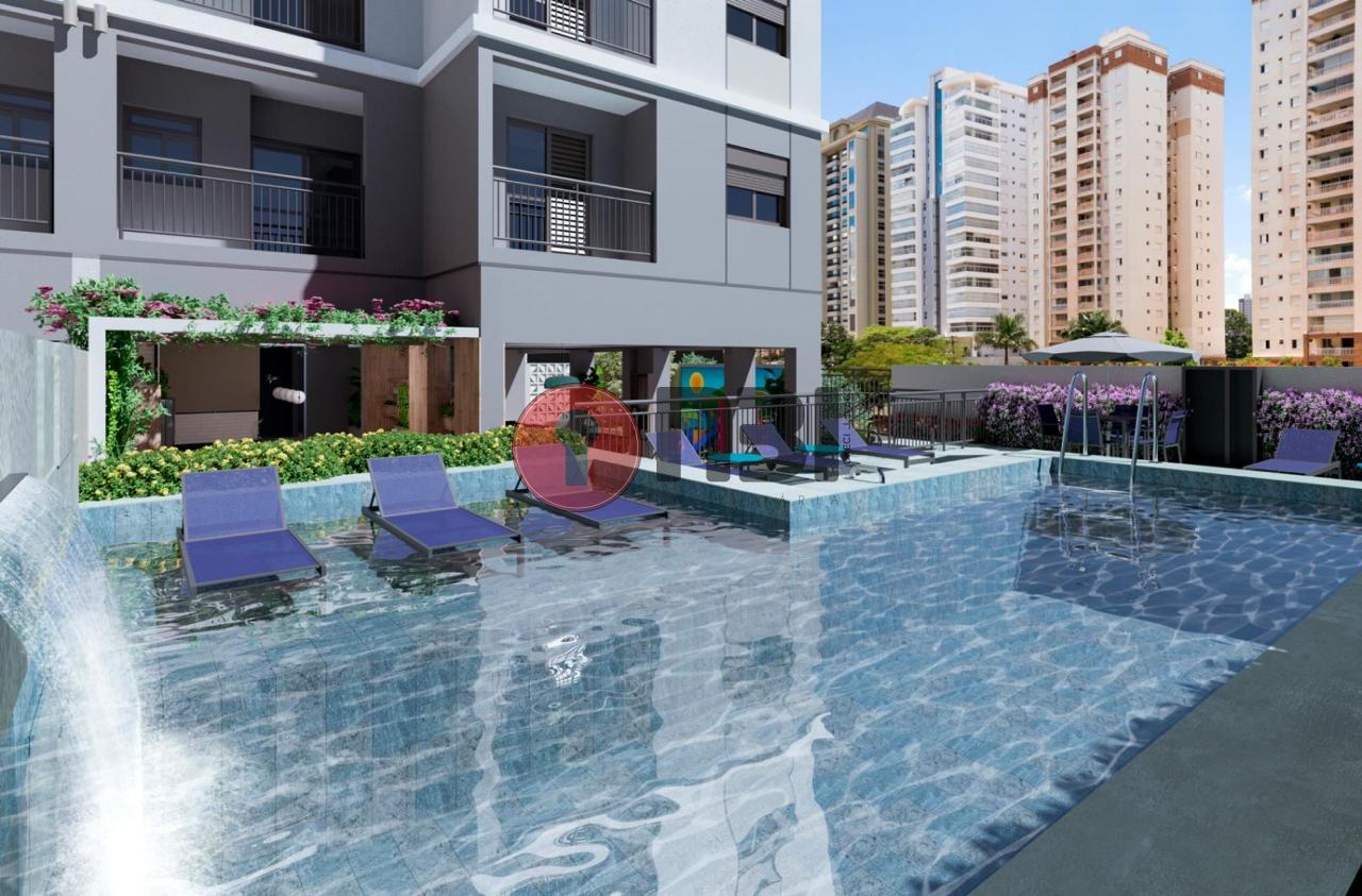 Condomínio com portaria inteligente, piscina, elevador, salão de festa, playground, brinquedoteca, espaço gourmet, manutenção e serviço de limpeza e sistema de monitoramento de câmeras de vídeo.