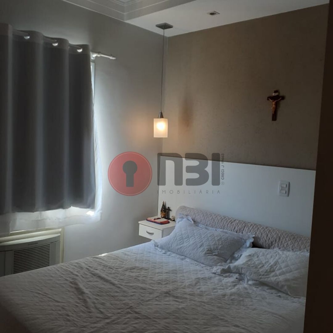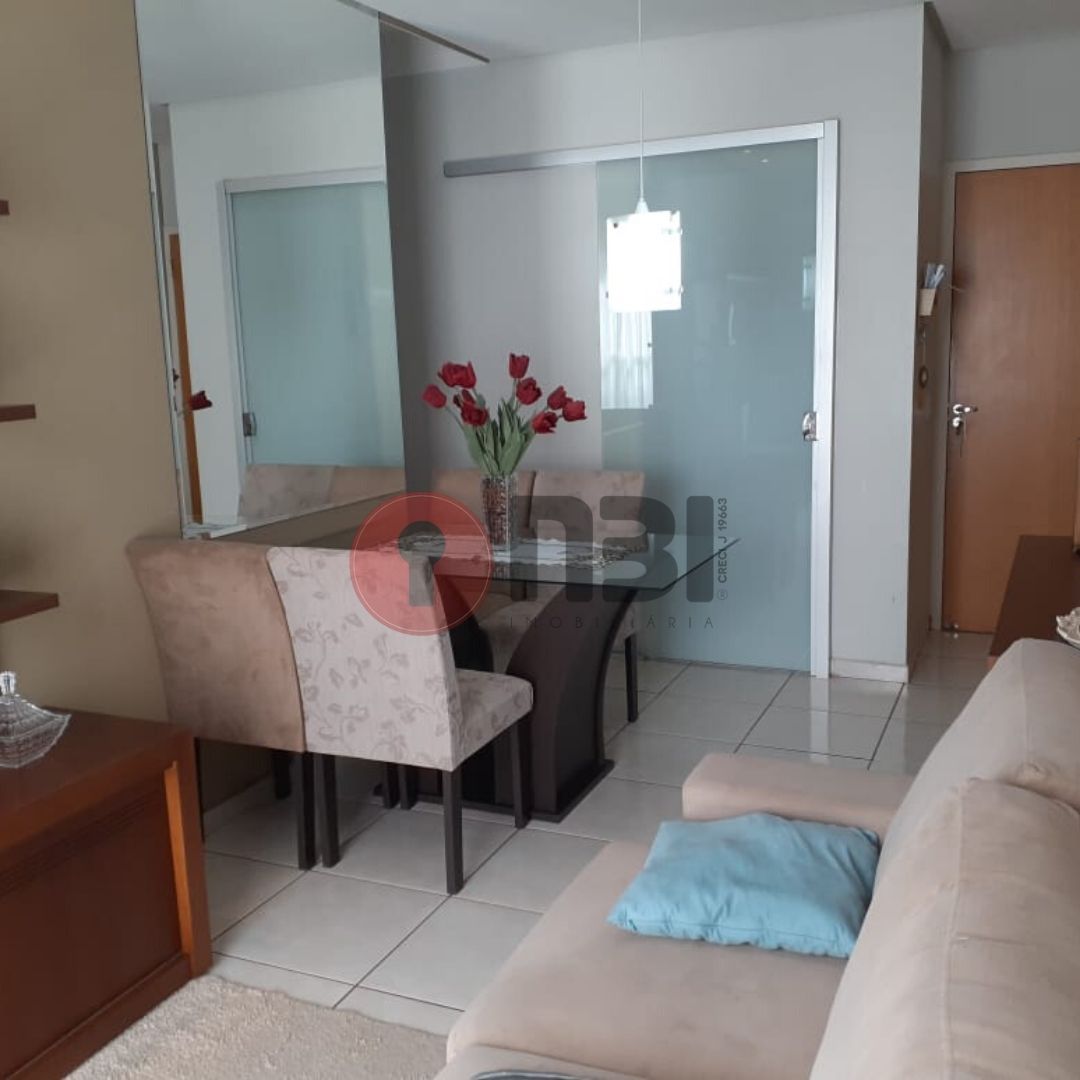 Imóvel divide-se em sala para 2 ambientes, ventilador de teto, ar condicionado, cozinha planejada, 2 quartos com ventiladores de teto sendo 1 com armário, banheiro social com gabinete e box de vidro, lavanderia, área de serviço e garagem.