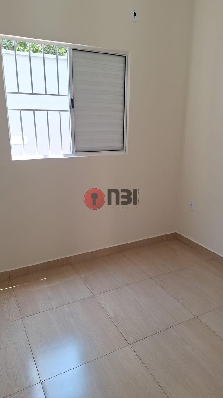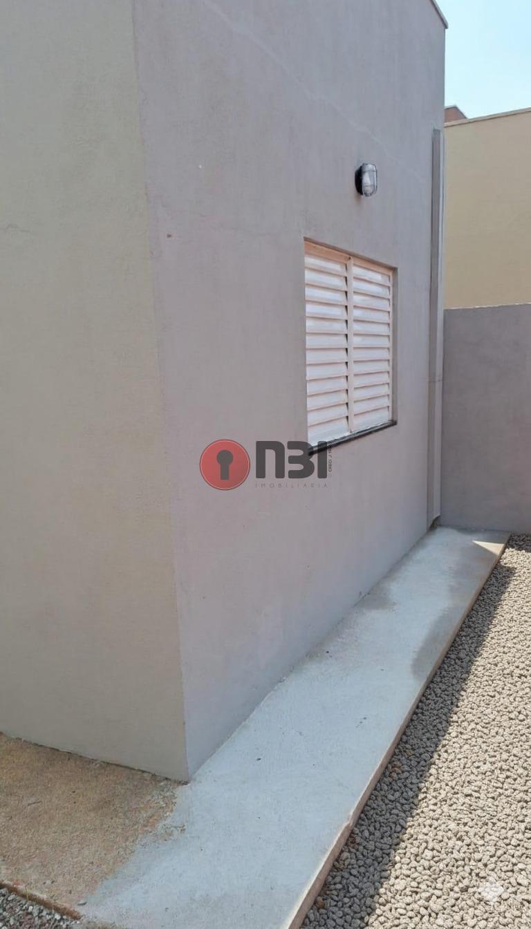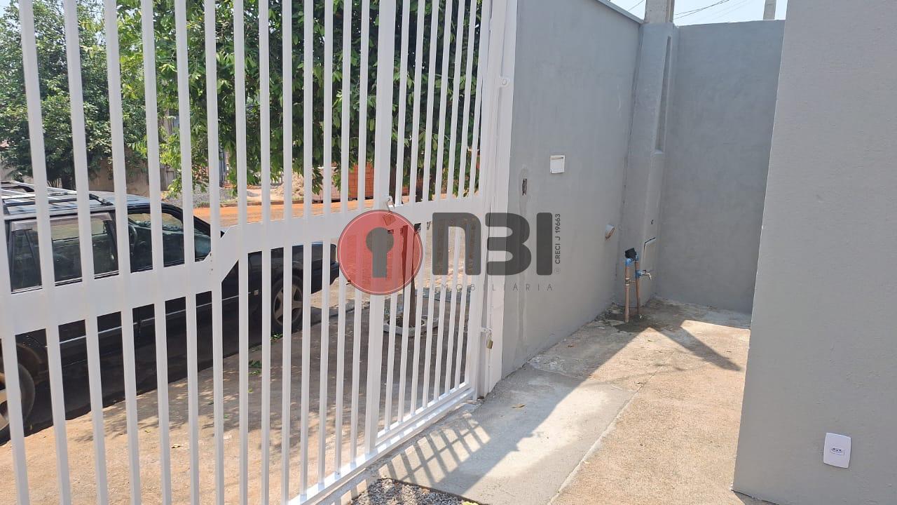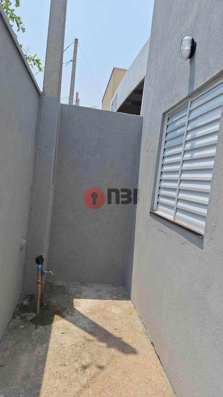 Imóvel divide-se em sala, cozinha, 2 quartos, banheiro social, lavanderia, área de serviço, garagem coberta e quintal amplo.