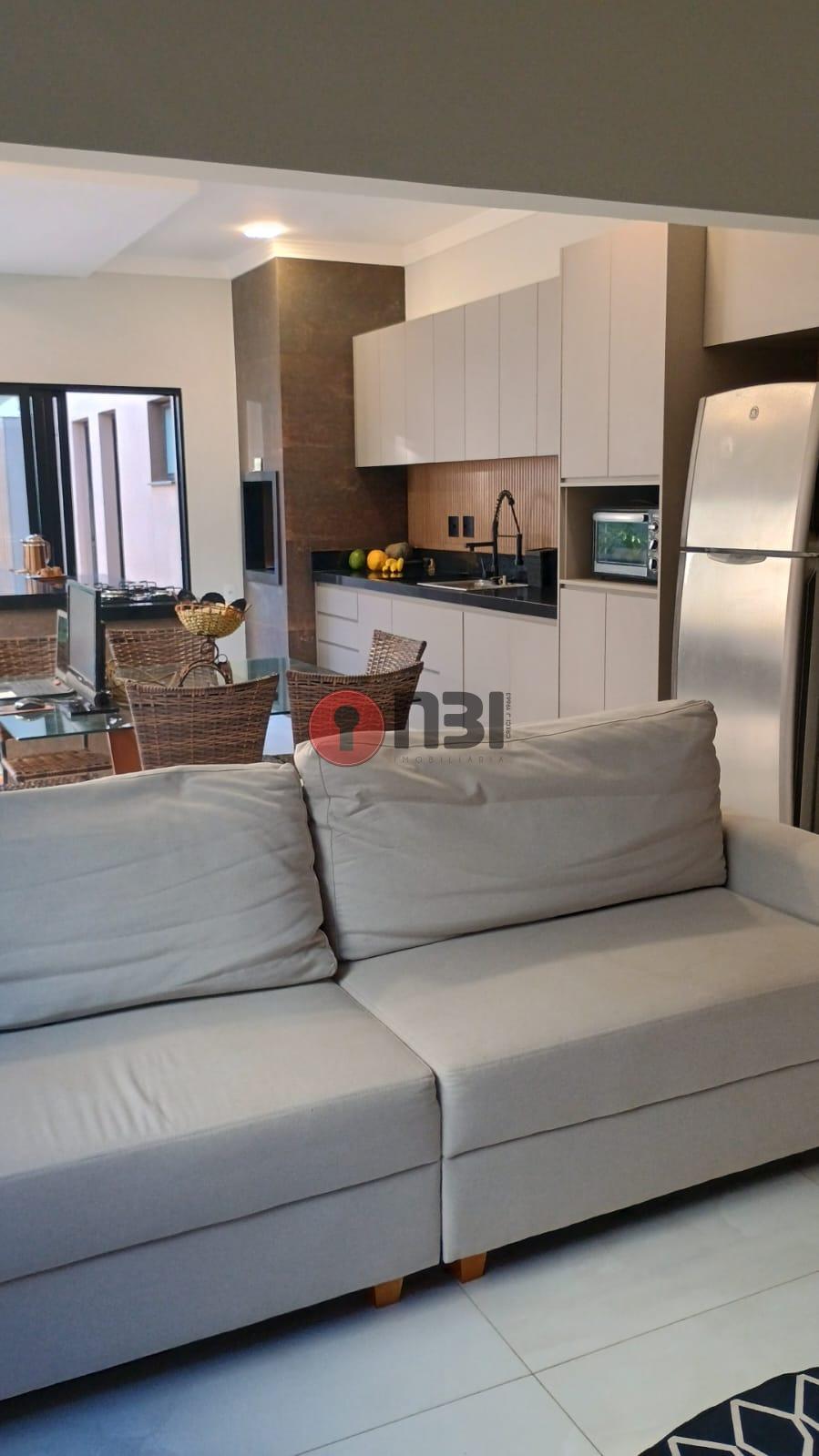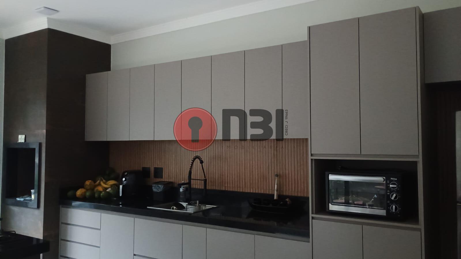 Imóvel divide-se em sala com pé direito alto, cozinha planejada, 3 quartos sendo suíte, banheiro social, lavabo, lavanderia, área de serviço, área gourmet, piscina e garagem.
