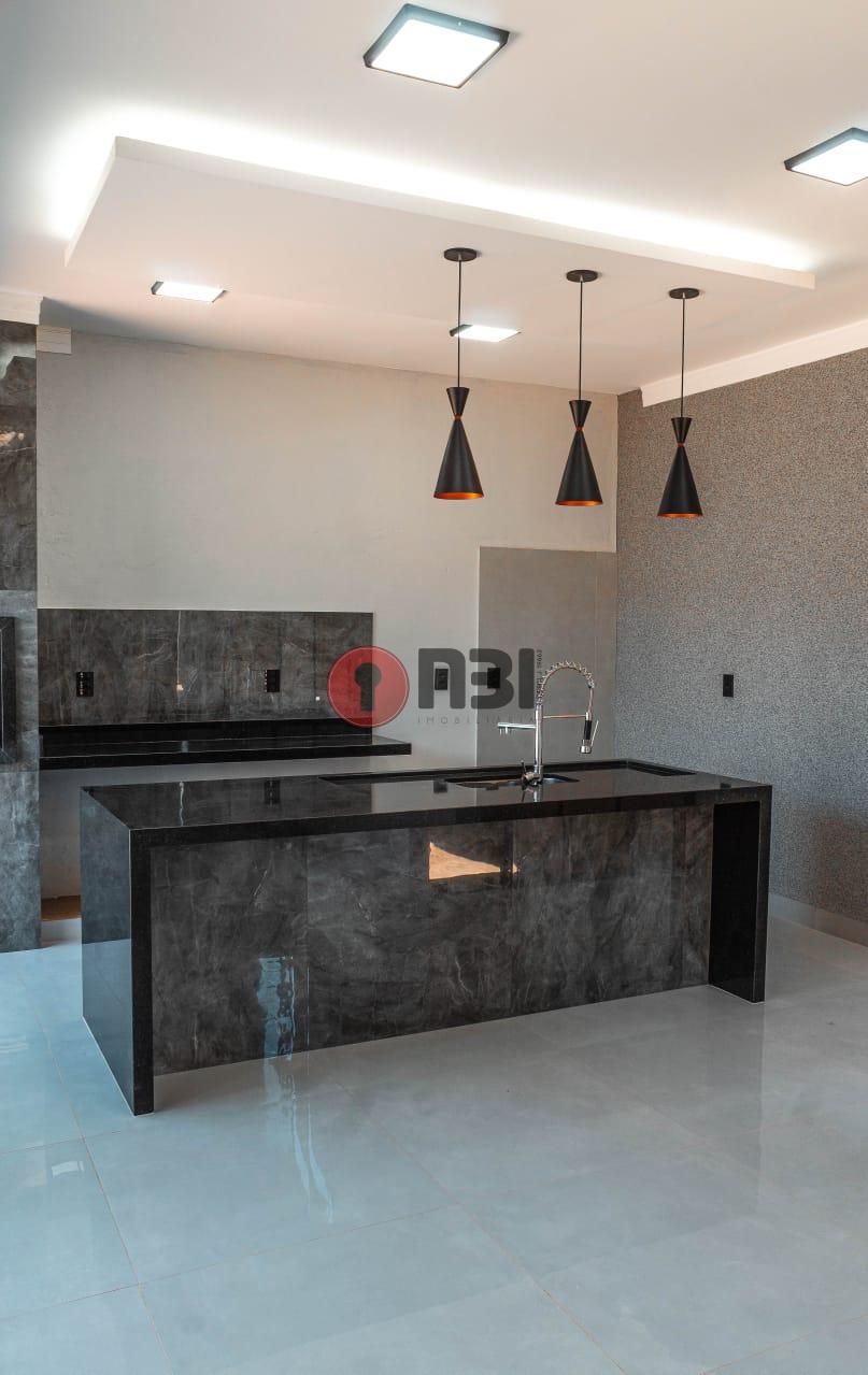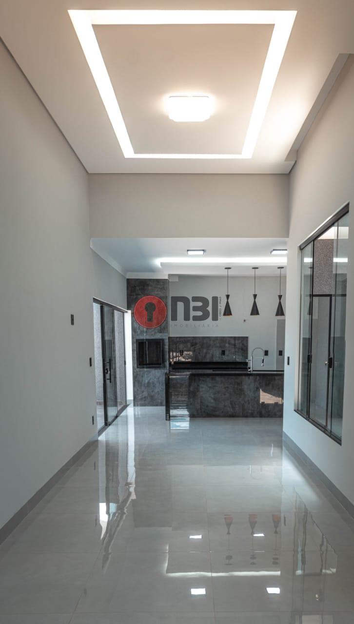 Imóvel divide-se em sala com pé direito alto, cozinha com ilha gourmet, iluminação de led, porcelanato, 3 quartos sendo 1 suíte, 2 banheiros, lavanderia, área de serviço, garagem, quintal e cerca elétrica.