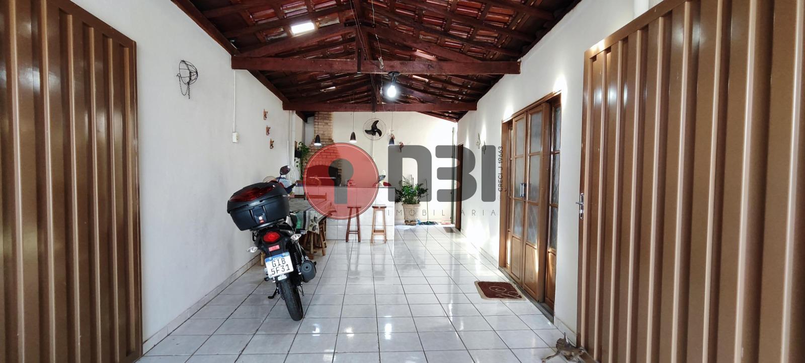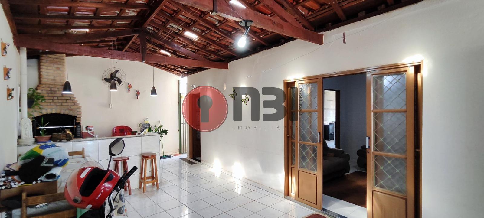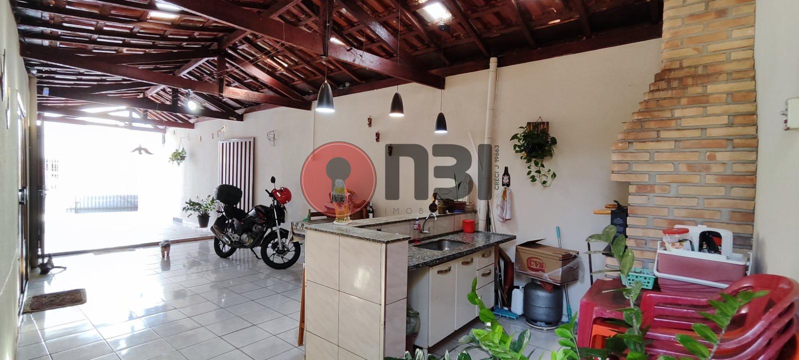 Imóvel divide-se em sala, cozinha com gabinete, 3 quartos, banheiro social, espaço gourmet com churrasqueira de alvenaria, lavanderia, área de serviço e garagem coberta.